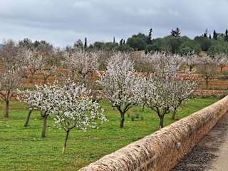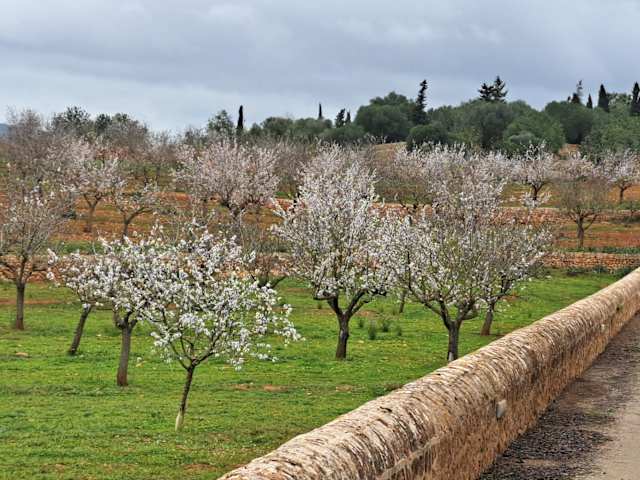 Mallorca ist auch für die Mandelblüte bekannt, die jährlich zwischen ca. Mitte / Ende Januar bis ca. Mitte / Ende März erfolgt (je nach Wetter und Mandelsorte) und viele Besucher_innen auf die Insel zieht. Wenn man den ersten blühenden Mandelbaum sieht, so findet man das schon gut, aber wenn man eine ganze Gruppe blühender Mandelbäume oder gar eine Mandelbaum-Plantage vor den Augen hat, so blickt man auf ein wahres Blütenmeer.