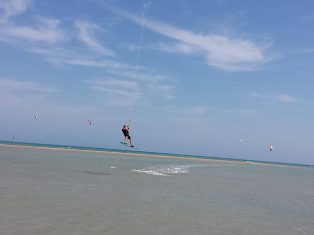 Kitesurfing ist der absolute Renner des Wassersports in El Gouna. Kitepower El Gouna, Kiteboarding Club El Gouna, sind in Deutscher-Leitung, außerdem gibt es auch in einigen Hotels Kitestationen. Untergrund im Stehbereich ist aus feinem Sand ohne Korallen oder Steine. Am Ende des Stehbereichs kommt eine Riffkante und die Wassertiefe erhöht sich auf einige Meter. Ich habe keine oder noch keine große Ahnung vom Kiten, für mich waren die Windverhältnisse in Ordnung als Anfänger. Jeden Mittwoch + Samstag ist Party angesagt, nach Mitternacht füllen sich die Strandbars mit ..., gemischtes Publikum Lagebeschreibung: Am Ende El Gounas, Shuttle-Bus hält vor der Tür Hinweis/Insider-Tipp: Captains INN oder das Turtles INN günstige Hotels für Surfer und Taucher und liegen zentral im Hafen und nahe des Mangrovy Beach und der Kitepower Station.