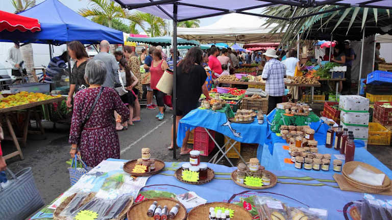 Am Samstag hat man in Saint-Pierre ein wenig das Gefühl von Ausnahmezustand – der Strandboulevard ist im westlichen Teil für Autos gesperrt, bereits am frühen Morgen zieht es Menschenmengen genau dorthin, Parkplätze sind bis zum alten Bahnhof praktisch nicht mehr zu bekommen und all dies hat einen simplen und wiederkehrenden Grund: Es ist Zeit für den Wochenmarkt, den „Marché forain du Front de Mer“, der von 6 – 13 Uhr am Boulevard Hubert Delisle stattfindet. Im Wettbewerb mit seinem Pendant in Saint-Paul hat er ganz klar die Nase vorn, denn sowohl von der Größe, als auch der Auswahl des Angebotes kann wohl kein Markt der Insel mit Saint-Pierres Marché forain mithalten. Frisch gepresster Zuckerrohrsaft, der direkt vor den Augen der Kunden in den Becher fließt, aufgeschlagene Kokosnüsse, geräucherte Würste, gackernde Hühner, eine unglaubliche Auswahl an Obst und Gemüse, Grillstände, kernige Landbrote, warme Samoussas, frische Erdbeeren, Öle, eingelegte Oliven und hausgemachte Konfitüren – die Aufzählung würde so schnell kein Ende nehmen… Nachhaltig beeindruckt von Frische und buntem Angebot habe ich den Wochenmarkt von Saint-Pierre noch bestens in Erinnerung. Besuchsempfehlung? Auf jeden Fall!