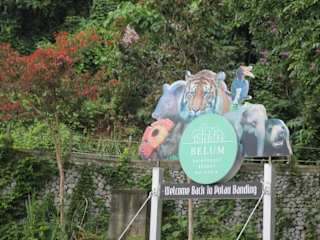 Eine kombinierte Boots- und Dschungeltour erwartete uns bei diesem Programm. Die Bootsanlegestelle befand sich in der Nähe der Hotelanlage Belum Rainforest Resort. Vor unserer Bootsabfahrt mit einem Speedboot auf den Temenggor See mussten wir uns zuerst eine Schwimmweste anlegen. Der künstlich angelegte Temenggor See weist eine Anzahl von unterschiedlichen lokalen Süßwasser-Fischarten auf. Da das Angeln auf dem See erlaubt ist, bietet der See ein ideales Ausflugsziel für Angler, welche Boote und schwimmende Häuser zum Übernachten mieten können. Das Seeufer ist ein beliebter Picknick- und Zeltplatz. Auffällig waren für uns die vielen grünen Häuschen im See. Nach Aussage unseres Reiseleiters sind das Fischzuchthäuschen und gehören einen norwegischen Großunternehmer. Wir konnten beim vorbeifahren sehen, wie die Fische von dem Angestellten gefüttert wurden. Anschließend fuhren bis zum Wasserkraftwerk. In der Nähe des Wasserkraftwerkes machten wir unseren ersten Dschungel Spaziergang. Auch wenn die Strecke verhältnismäßig kurz war, kam man trotzdem leicht ins Schwitzen, denn es ging über unebene Wege, zum Großteil leicht bergauf. Es ist auch noch die Luftfeuchtigkeit zu beachten, sie betrug über 80% bei unserer Wanderung. Außer Ameisen, Schmetterlinge und Blutegel haben wir keine Tiere bei diesem ca. 40 Minuten langen Spaziergang gesehen. Riesige Haufen von Elefantenkot haben wir auf unserem schmalen Wanderpfad bemerkt. Nach Aussage unseres einheimischen Führers waren vermutlich mehrere Elefanten vor ca. 30 Minuten auf diesem Pfad. Der Royal Belum State Park ist laut einer Broschüre die Heimat von vierzehn der weltweit am meisten bedrohten Säugetiere. Dazu gehören u.a. die asiatischen Elefanten, das Sumatra-Nashorn, sowie zahlreiche Mitglieder der Katzen-Familie wie die herrlichen malaysischen Tiger, der Nebelparder, die Goldkatze und Marmorkatze. Bei unserer Bootsfahrt zum Orang Asli Dorf sahen wir am Ufer des Temenggor Sees einen Elefanten. Natürlich war das einer der Höhepunkte unserer Boots- und Wandertour. Nach etlichen Photos vom Elefanten fuhren wir weiter zum Orang Asli Dorf. Wir waren etwa 45 Minuten in diesem Dorf der Ureinwohner. Nach dem Dorfbesuch fuhren wir mit dem Boot weiter zum Sungai Ruok-Wasserfall. Wir machten jedoch vor dem Aufstieg noch Picknick bei einem kleinen Gebirgsbach. Nun kam der anstrengende Teil unserer Wanderung, der Aufstieg zum Sungai Ruok-Wasserfall. Die Hälfte unserer Reisegruppe blieb in der Nähe der Boote. Der erste Teil des Aufstiegs ging noch, dann wurde es steiler und vor allem rutschiger. Schwieriger für mich waren jedoch einige Bachüberquerungen. Es ging von Stein zu Stein und als Sicherung war nur eine Schnur vorhanden. Gleichgewichtsstörungen durfte man hier nicht haben. Vor dem Sungai Ruok Wasserfall war auch noch ein schmaler Wasserfall. Nach einem kurzen Aufenthalt ging es die gleiche Strecke wieder zurück zum Boot. Als wir beim Boot angekommen sind, fing es leider auch zum regnen an. Da das Boot überdacht war, kamen wir noch einigermaßen trocken in Belum Rainforest Resort an. Die Überraschung kam dann im Hotelzimmer, es haben sich 4 Blutegel als Mitbringsel von der Wanderung an meinen Beinen und am Arm angesaugt. Eine Boots- und Wandertour, die man so schnell nicht vergießt. Nebenbei erwähnt, der Nationalpark darf nur in Begleitung eines Rangers erkundet werden.