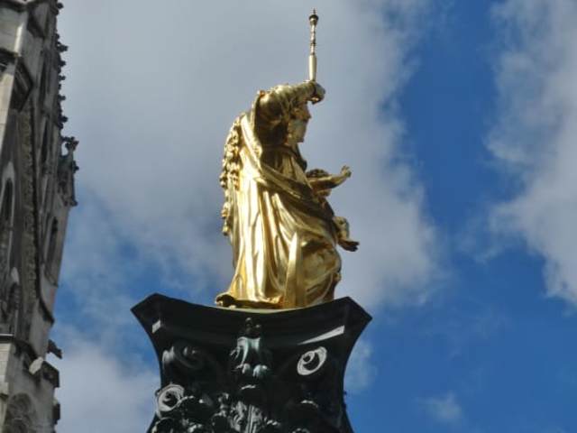 Die schöne, reich dekorierte Säule befindet sich auf dem Marienplatz vor dem neuen Rathaus. Vor diesem geht die Säule fast ein wenig aus dem Auge verloren, trotzdem sollte man sich etwas Zeit für die Betrachtung nehmen.