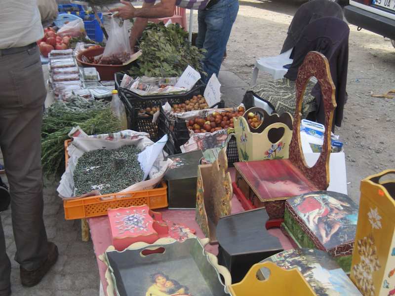 einheimischer Markt mit viel Handwerkskunst und viele leckereinen aus Muttis Küche .Sehr günstig, keine aufdringliche Verkäufer in den Stadtmauern von Sigacik .
