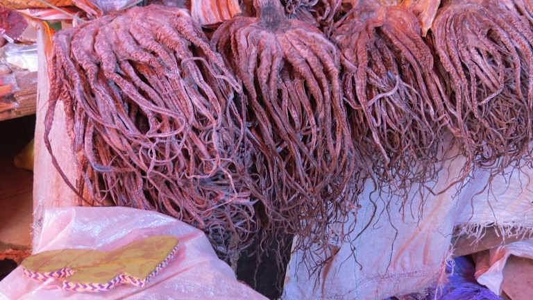 Der Markt ist sehr ursprünglich. Es gibt dort alles für den täglichen Gebrauch zu kaufen. Dort liegen aber auch die Innereien von Tieren wie z.B. Leber usw. auf alten Holztischen herum. Kein gewöhnlicher Anblick für Europäer.Es gab auch eine riesige Auswahl an Fisch, wie z.B auch der Papageifisch. Die Menschen auf dem Markt waren sehr freundlich.