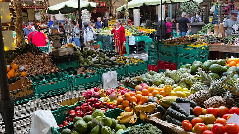 Die Markthalle von Funchal, der „Mercado dos Lavradores“, gehört zu den echten Highlights bei der Besichtigung der Hauptstadt und lohnt aus meiner Sicht auf jeden Fall einen Besuch. Der Haupteingang gehört den Blumenverkäuferinnen in ihrer klassischen Tracht und im Erdgeschoss der Markthalle reihen sich die Stände der Obst- und Gemüsehändler. Dazwischen gibt es Ladengschäfte, die von Kühlschrankmagneten, Postkarten und Madeirawein so ziemliches alles anbieten, was das Touristenherz glücklich macht, während Cafés mit einem Galão und warmem „Bolo do caco“ echtes Madeira-Feeling für ganz kleines Geld und mit viel Charme an den Platz transportieren. Highlight ist ohne Frage die Fischabteilung im Basement, in der auf Marmortischen alles angeboten wird, was der Atlantik aus regionalem Fang hergibt. Beeindruckend sind die Degenfische (Espada), die traditionell mit der Angel aus großer Tiefe gefischt und auf Madeira zu Recht als außerordentliche Delikatesse gehandelt werden. Der Rundgang durch die Markthalle von Funchal wirkt inspirierend und macht auch ohne direkte Kaufabsicht richtig Spaß. Wer sparen muss und keinen besonderen Wert auf regionale Produkte legt, kommt im Supermarkt mit konfektionierter Importware sicherlich eher auf seine Kosten.