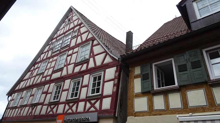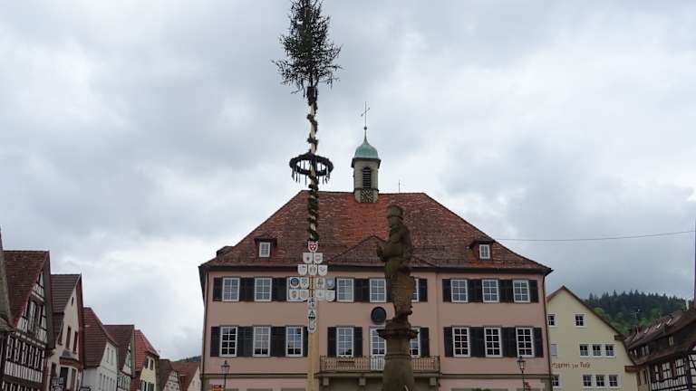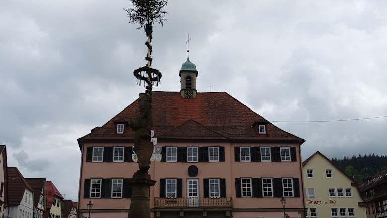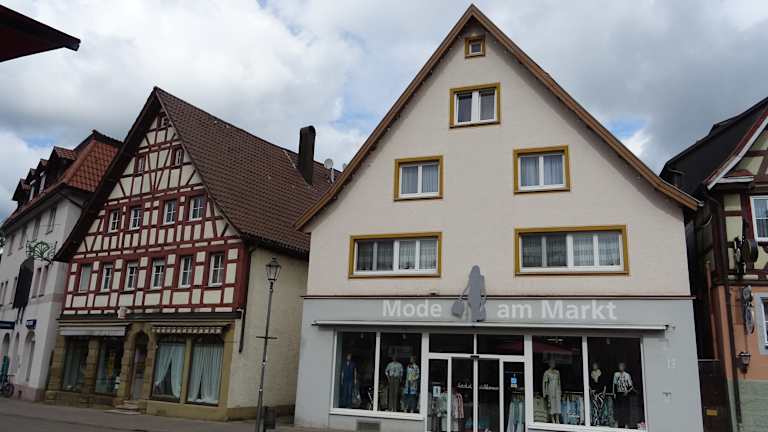 Die Gebäude rund um den Marktplatz stammen von verschiedenen Epochen. Das Gebäude auf der Westseite des Platzes, in welchem sich heute die Touristinfo befindet stammt aus dem 19. Jahrhundert, Das Gebäude mit dem herzoglich württembergischen Amtswappen - ehemalige Oberamtei - aus dem 18. Jahrhundert, am Ende ein im 20. Jahrhundert wiederaufgebautes Fachwerkgebäude. Auf der Ostseite stehen ebenfalls sehr schöne, historische Gebäude - diese wurden wohl alle im 18. Jahrhundert errichtet.