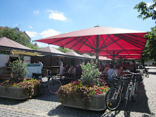 Die neuen Markstände besetzen den südlichen Teil des Viktualienmarktes, so dass der Sichtbezug zwischen Neuem Rathaus und Theater wieder freigestellt, verschiedene Marktstände-Imbissbetreibe bieten Speisen und Getränke an. In München werden auch Obst, Gemüse, Blumen und Feinkost angeboten, hier nicht.