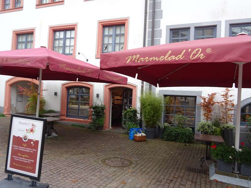 Das Marmelad`Or befindet sich gegenüber dem Heiliggeist-Spital am Rande des Fußgängerzonenbereichs. Sehr urig und gemütlich, tolle Auswahl an Kuchen und Gebäck - es gibt auch die Möglichkeit diverses Gebäck, Marmeladen etc als Mitbringsel zu erwerben. Können wir sehr gerne weiteremfpehlen.