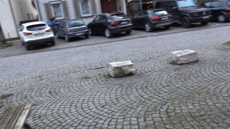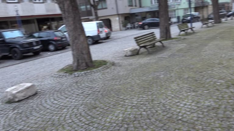 Schöner Platz an der Martinskirche mit Wehrmauer und Gedenkbrunnen!