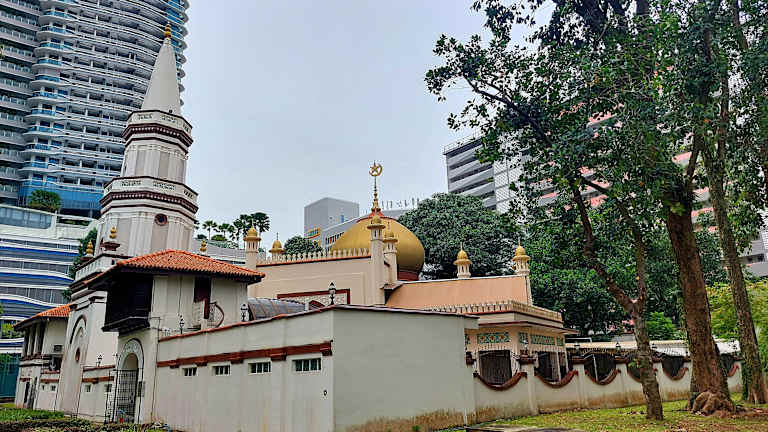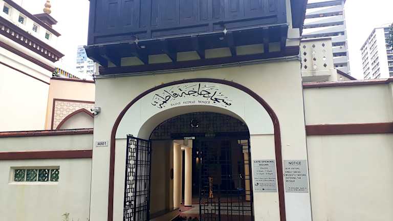Die Masjid Hajjah Fatimah Moschee an der Beach Road im Stadtteil Kampong Glam ist die einzige Moschee die nach einer Frau benannt wurde. Die Geschäftsfrau Hajjah Fatimah Binte Sulaiman bewohnte ein Haus welches ausgeraubt und in Brand gesetzt wurde. Als Dank für die geglückte Flucht ließ sie die Moschee bauen. Die Moschee, die 1846 fertig gestellt wurde, vereint sowohl europäische als auch islamische Stilelemente. Auffällig ist das schiefe Minarett, welches der Moschee auch den Beinamen „Singapurs schiefer Turm von Pisa“ gab. Seit Juni 1973 ist die Moschee Nationalmonument. Man kann die Moschee kostenlos besuchen. Es gibt 2 verschiedene Eingänge. Linke Seite ist der Eingang für Frauen und rechtsseitig der Eingang für Männer. 4001 Beach Road https://www.masjidhajjahfatimah.sg