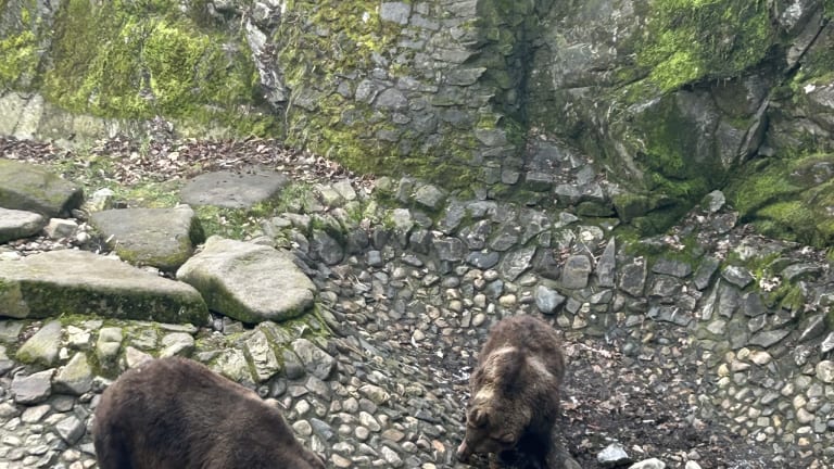 Traditionell werden hier Bären gehalten Heute sind zwei Tiere zu sehen am Burgausgang Richtung Altstadt, großes und kleines Tiet