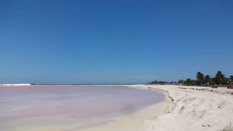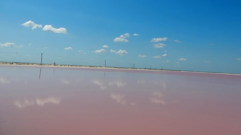 Mit Aledia Tours fuhren wir nach der Besichtigung von Ek Balam in das Fischerdorf Las Coloradas mit seiner Meersalzgewinnung. Große Becken sind mit Meerwasser abgetrennt und so wird Meersalz gewonnen und zu Speisesalz verarbeitet. Bekannt wurde dieser Ort auch durch das "Pink Water". Mikroorganismen verleihen dem Wasser diese ungewöhnliche rosarote Farbe .... Das salzhältige Wasser dort darf man weder berühren noch die Füße in die Becken stellen. Es war ein tolles Erlebnis dies zu sehen, aber irgendwann sagte uns die Reiseleiterin wird diese Meersalzgewinnungsanlage für Touristen gesperrt werden, weil sich die Leute auch nicht immer an die Regeln halten.