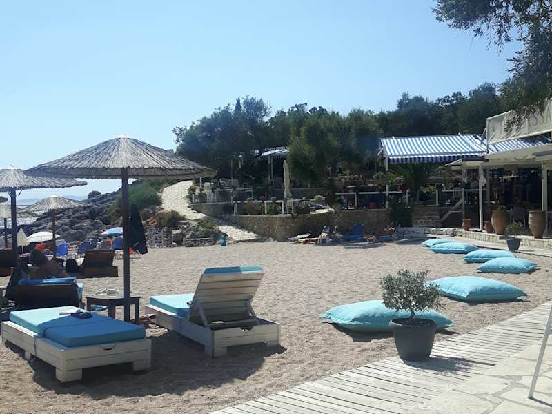 Bei Familie Thomas gibt es kostenlose Liegen, wenn man den Gastronomieservice nutzt. Die Taverne ist sehr liebevoll und landestypisch gestaltet. Ein Platz zum Wohlfühlen!