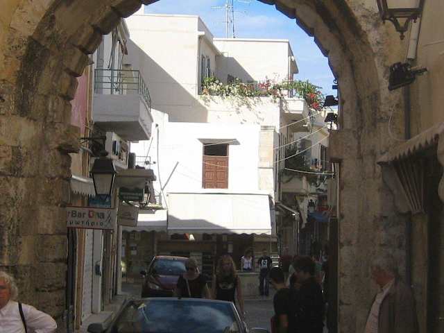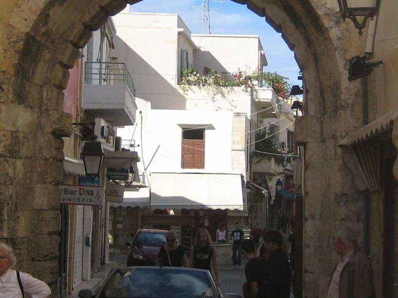 Altstadteinwärts führt die Megali Porta ( = Großes Tor) über die Straße Ethnikis Antistaseos direkt ins Zentrum der Altstadt. Altstadtauswärts führt sie auf die Straße Gerakin bzw. auf die Platia Tesseron Martiron, durch die wiederum die Straße Kountouriotou verläuft. Auf dieser Straße fahren die Busse, die zum oder ab dem Busbahnhof unterwegs sind. Gegenüber der Megali Porta liegt der Stadtgarten. Zur Geschichte der Megali Porta: Das Tor ist einer der wenigen Überreste der Stadtbefestigung aus dem 16. Jahrhundert. Die ursprüngliche Toranlage soll ein Gewölbe von ca. 27 m Länge / Tiefe gehabt haben – meines Erachtens demzufolge länger / tiefer als das heutige Torgewölbe der Fortezza. Die Anlage an sich soll noch zu Anfang des 20. Jh. intakt gewesen sein, wurde dann aber 1902 abgerissen. Über dem ursprünglichen Tor war das venezianische Wappen zu sehen: der Markuslöwe. Dieses Wappen befindet sich heute im Archäologischen Museum von Rethymnon. Weiterhin: Ein anderer Name der Megali Porta ist Porta Guora – so benannt nach Jocopo Guoro, der zur Zeit des Baus (1566-68) Statthalter von Rethymnon war. Neben der Megali Porta gab es damals nur zwei weitere Tore, die den Zugang zur Stadt ermöglichten. Sie scheinen allerdings nicht mehr zu existieren. Die heute zu sehende Megali Porta entspricht – wenn es um die Größe geht – keinesfalls dem ursprünglichen Tor.