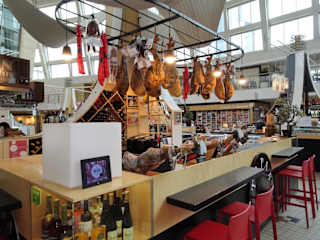 Hier gibt es zur Abwechslung nicht mal nur die rohen Zutaten, sondern fertig zubereitete Speisen. Es ist für jeden Geschmack etwas dabei. Von herzhaft bis Süß. Es gibt Sushi, Tapas, Käse, Schinken, Spanferkel, Suppen, Desserts in allen Variationen, Kaffee, Getränke, Sekt, Wein, Bier, etc. Es ist schön, daß sich jeder an dem Stand seiner Wahl etwas holen kann und man sich wieder in der Mitte mit den Anderen zum Essen trifft. Am besten holt jeder etwas anderes, man stellt es in die Mitte des Tisches und jeder probiert von allem. Die Preise sind recht günstig und es gibt eine große Auswahl. Man kann hier einige Zeit mit Essen verbringen. Einfach SUPER. Wer eine klassische Markthalle mit rohen Zutaten erwartet ist hier natürlich völlig falsch. Erreichbar mit der Metro bis Haltestelle Casa da Música und dann einmal quer über den großen Kreisverkehr. Ca. 5-10 Gehminuten.