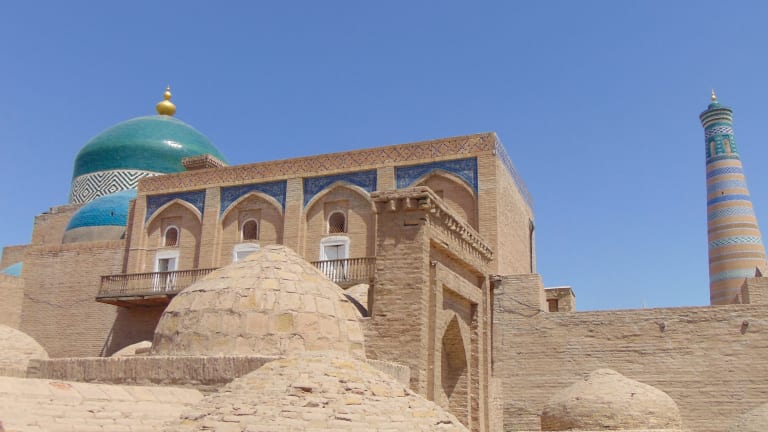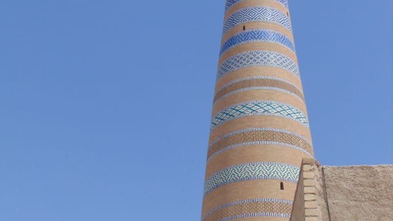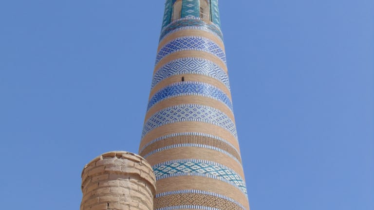 Das wunderschöne Islom Chodscha Minarett (nach seinem Erbauer ernannt) steht inmitten der historischen Ichon Qala Altstadt der westusbekischen Stadt Chiwa. Es ist eines von sieben herausragenden Minaretten in der ehemaligen Handelsstadt der usbekischen Seidenstraße und insgesamt knapp 57 m hoch und hat im unteren Bereich einen Durchmesser von 9,5 Metern. Das Minarett ist zwischen 1908 und 1910 erbaut worden und besticht äußerlich nicht nur durch seine gebrannten beigebraunen Ziegel, sondern auch - und vielmehr - durch durch kunstvoll und aufwändig angelegte Majoliken in Blau-, Grün- und Weißtönen! Man kann gegen einen Eintrittspreis von mittlerweile 100.000 Sum das sehr (!) enge, aus Holzstufen bestehende Treppenhaus bis hin zur Aussichtplattform auf einer Höhe von 45 Metern hinaufsteigen. Was passiert, wenn andere Besucher entgegenkommen (=quasi wieder hinabsteigen), weiß ich nicht. Ausweichplatz besteht hier eigentlich keiner! Die Aussicht lohnt aber ungemein- und die weit über 100 engen, teils steilen Stufen in sehr dunkler Umgebung lohnen aber definitiv! Unbedingt Wasser mitnehmen - man kommt außer Puste, wenn man oben ist! Die Eintrittspreise haben sich innerhalb von zwei Jahren verdoppelt. Ich war im September 2021 hier und hatte 50.000 Sum bezahlt. Im Juni 2023 waren es bereits 100.000 Sum! Absolute Empfehlung - trotz der Anstrengungen! :-)