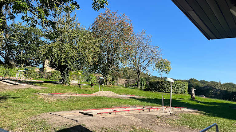 Wir waren im August mit unserem Patenkind hier eine Runde Minigolf spielen. Der Platz ist zwar schon etwas in die Jahre gekommen, jedoch konnten wir hier in Ruhe für uns zu einem günstigen Preis spielen. Vor Ort war kein Mitarbeiter, jedoch konnte man das Geld einfach in einen Briefkasten schmeißen und sich die Schläger, Bälle und Punktetabelle einfach nehmen. Wir hatten viel Spaß und können es jedem empfehlen. Zudem hat man nebenan im Burgrestaurant eine schöne Aussicht bei Getränken und Speisen.