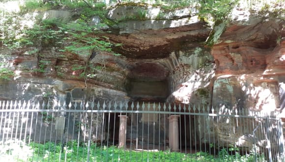 Die sehr schöne Mithraskapelle am Halberg liegt auf einem Wanderpfad unterhalb des Halberg. Das Mithras Heiligtum ist eine kleine Höhle zur Verehrung des Lichtgottes Mithras und eines der ältesten historischen Römerstätten in der Region. Von der Brebacher Landstraße 30 geht der Raundwanderweg an der Römersiedlung und der Mithraskapelle vorbei. Für uns ist das Mithras Heiligtum eine sehr schöne Sehenswürdigkeit, so wie ein lohnendes Ausflugsziel für Wanderfreunde in der Region und eine klare Weiterempfehlung wert! Adresse: Mithraskapelle am Halberg Brebacher Landstraße 30 D-66121 Saarbrücken