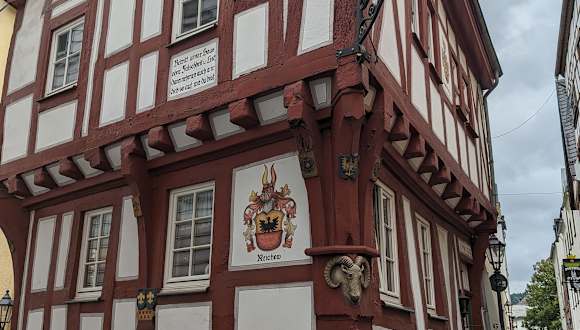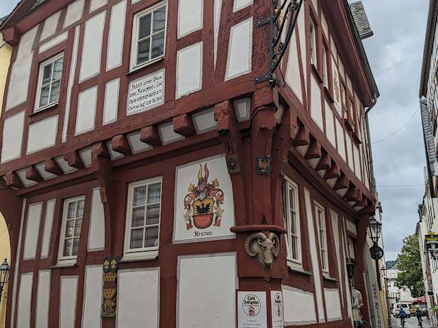 Nach dem Mindelheimer Klettersteig 1990 im Allgäu sehnte ich mich schon lange nach einem „echten“ Klettersteig. Aus Anlass meines 75. Geburtstages erfüllte ich mir diesen Wunsch mit meinen beiden erwachsenen Söhnen. Für die Überwindung der 300 Höhenmeter wählten wir die Klettervariante mit 10 Leitern, 130 Trittbügeln und ca. 180 Meter Drahtseil. Die alternative Wandervariante wäre wohl kaum weniger anstrengender gewesen (nänlich gleich zu Beginn des ersten steilen Aufstieges war auf einer Tafel handschriftlich vermerkt: "Absolut keine Wandervariante!"). Die Rundtour startete rechts neben der Talstation des Sesselliftes. Nahezu der gesamte Weg ist gut mit Hinweistafel ausgestattet, die auf die Gefahren des Klettersteiges aufmerksam machen. Selbst die senkrechten Felspassagen bildeten kein Problem, wenn man trittsicher und schwindelfrei ist! Obwohl ein Samstag waren wir während des ganzen Aufstieges fast allein. Wegen eines Nieselregens musste man aber trotzdem auf dem rutschigen Schiefer- und Wurzelpfad-besonders in der Schlucht des Ewigbaches-vorsichtig sein. Hier folgte der wohl anstrengendste steile Aufstieg mit Trittbügel, Leitern und Felsenklippen, meist zusätzlich mit Stahlseilen gesichert; festes Schuhwerk also ein Muss. Immer wieder gab es grandiosen Panoramablicke auf Boppard mit der größten Rheinschleife und den Bopparder Hamm (größtes zusammenhängendes Weinanbaugebiet am Mittelrhein) Mehrfach luden auch Bänke an besonders schönen Aussichtspunkten zu Genießen und Fotografieren ein. Nach Erreichen der Kammhöhe ging es fast eben auf einem Felsenpfad durch einen Krüppeleichenwald vorbei an der „Engelseiche“ mit Hütte bis zum Gasthof am „Vierseenblick“ mit großzügiger Sonnenterrasse (hier wird der Rhein durch vorgelagerte Wälder viergeteilt). Nach doch anstrengenden zweieinviertel Wander- und Kletterzeit ein verdienter Rastplatz. Wahlweise über eine Schotterpiste oder einen Felsenpfad ging es weiter zum „Gedeonseck“, ebenfalls ein kleiner Gasthof mit Sonnenterrasse und tollem Rheinblick. Um zurück nach Boppard zu gelangen hat man nun mehrere Möglichkeiten. Das letzte Stück des eigentlichen Klettersteiges führt über die felsige "Rip" unter der Sesselbahn ins Tal hinunter. Doch wegen erneut einsetzenden Nieselregens wählten wir den bequemeren Sessellift, gleichfalls mit tollen Aussichten auf die von ständig unzähligen Schiffen befahrene Rheinschleife. Als krönenden Abschluss dieser Traumschleife kehrten wir in Boppard noch zum wiederholten Male in das nahe des Marktplatzes gelegene traumhafte „Café Zeitgeist“ ein. Leider haben wir gelesen, dass dieses vielleicht älteste Fachwerkhaus von Boppard seit November 2023 dauerhaft geschlossen ist. Schöner können 10 Tage an Rhein, Mosel, Eifel und Hunsrück für uns nicht enden.
