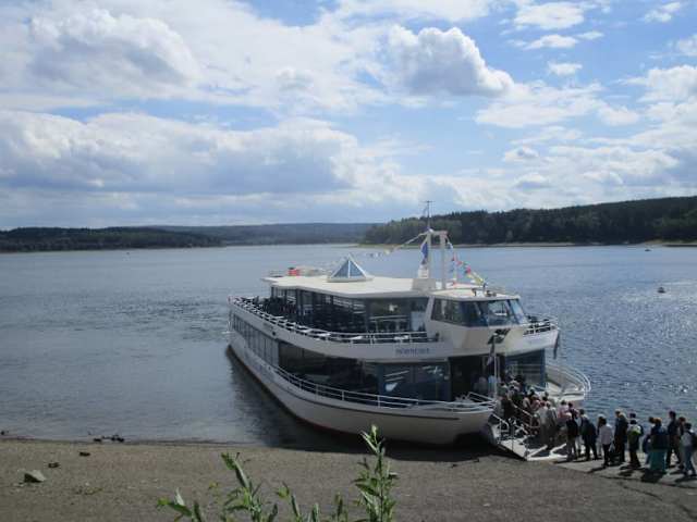 Die Schiffsfahrt mit der MS Möhnesee dauert ca. eine Stunde und es werden zwei weitere Anlegestellen angefahren. Die meisten Fahrgäste steigen aber direkt bei der Staumauer ein und aus. Das Schiff ist eigentlich sehr groß für den Möhnesee und hat ein Passagier Volumen für 600 Personen. Auf zwei Decks mit reichlich Freifläche findet jeder sein Plätzchen. Es werden genügend warme und gekühlte Getränke sowie Kuchen und kleine Snacks verkauft. Die Rundfahrt ist sehr gediegen, weil wegen den Brücken nur der halbe See befahrbar ist. Die Landschaft ist auch nicht spektakulär, ehr gediegen. Wenn man in der Nähe ist kann man die einstündige Rundfahrt für 10€ Normalpreis machen, muss man aber nicht unbedingt.