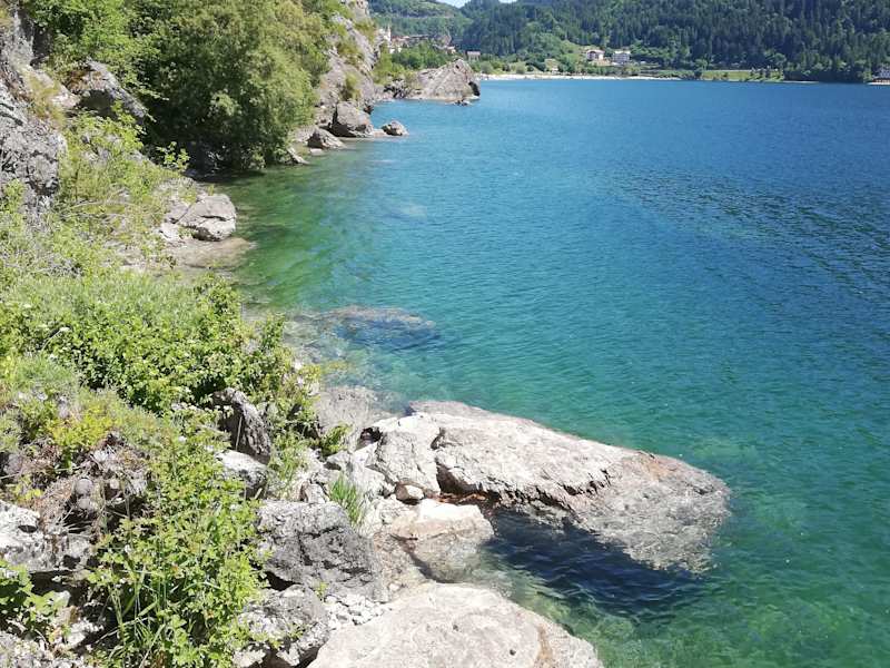 Der Molvenosee ist ein der schönsten Seen in Norditalien. um den ein Wanderweg führt. Die leichte Tour dauert etwa 3 Std. und ist 11 km lang. der maximale Höhenunterschied beträgt 90 m. Nach dem Campingplatz links, folgen Sie dem leicht ansteigendem Weg, der zur Römischen Brücke und dem Wasserfall von Rio Ceda führt. An der Kreuzung links abbiegen und Sie erreichen in Kürze die Trümmer der Napoleonischen Festungen, gebaut in Jahre 1805. Nach rechts abbiegent erreicht man Balta Fortiini. Zurück auf dem Wanderweg nehmen Sie den Wanderweg am Seeufer. Bei der Örtlichkeit Lasta verlassen Sie die Seepromenade und folgen dem Weg auf der anderen Straßenseite bis zum Grandhotel Molveno. Von hier aus führt der Weg erst durch den Wald und dann am See zurück nach Molveno.