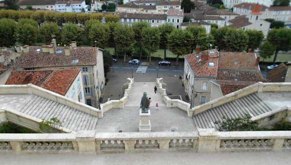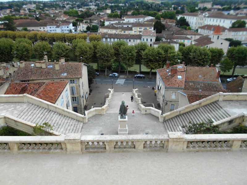 Wer von Toulouse oder Agen kommt und auf seinem Weg zu den Pyrenäen. Auch durchfährt, kommt automatisch an der Monumentaltreppe vorbei. Sie liegt direkt an der Straße entlang des Gers und führt ab dort hoch zur Altstadt und zur Kathedrale. Flankiert wird sie auf der rechten Seite vom Tour d’Armagnac, auch Tour du Sénéchal genannt. Alles sehr sehr schön anzusehen. Mittig, am Ende der ersten Treppenetage eine dunkle Statue. Es ist die Bronzestatue des Charles de Batz-Castelmore d’Artagnan. De Batz stammte aus der Nähe von Auch und wurde der Welt bekannt durch den Roman von Alexandre Dumas „Die drei Musketiere“. Es gab ihn wirklich… :-) und geboren wurde er 1623 bei Lupiac - ca. 40 km von Auch entfernt. (Eine interessante Website ist: http://www. artagnan. de/dumas-drei-musketiere/realitaet.html) Oberhalb der Statue des d’Artagnan findet man das „Observatoire du temps“. Es soll an die katastrophale Überschwemmung von 1977 erinnern. (Zu sehen unter „Inondations Auch Juillet 1977“) Ursprünglich hatte die Treppe einen rein praktischen Zweck: Sie sollte die Unter- mit der Oberstadt verbinden – was sie ja auch tut. Mitte des 19. Jahrhunderts wurde die Idee geboren, 1863 – in nur drei Jahren - war die Treppe fertig. Mit den Jahrzehnten sah sie immer weniger schön aus und ich erinnere mich, dass sie bei meinen diversen Besuchen (der letzte um 2003) nicht mehr prickelnd aussah. Aber... 2009 wurde eine Restauration beschlossen und heute – nach vollendeter Arbeit - ist sie ein echtes Prunkstück. Ich war begeistert.
