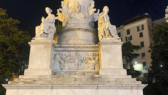 Auch wenn Columbus in Diensten der Spanier stand, als er Amerika entdeckte – er war Genueser und wird in seiner Heimatstadt mit einem Denkmal vor dem Bahnhof Piazza Prinzipe geehrt. Etwas befremdlich mutet es allerdings an, dass Columbus hier mit einem riesigen Schwert in einer Art griechischem Kostüm und mit barbusigen Gespielinnen zu seinen Füßen dargestellt wird.