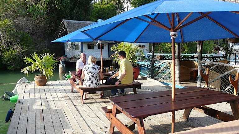 Ein Floß-Restaurant. Das Moorings ist absolut einzigartig und hat ein super schönes und romantisches Ambiente. Es ist ein riesiges Floß mit einer Bar in der Mitte. Am Mtwapa Creek, oder besser gesagt im Creek, ist das Moorings unter Wassersportlern ein Geheimtip. Dort werden sie viele in Kenia ansässige Weiße treffen. Die Besitzer sind Ute(aus Hürth bei Köln) und ihr Mann Crispin. Im Moorings trifft man sich zum Sundowner(Sonnenuntergang).Einfach wunderschön, selbst für Antiromantiker. Ideal um Anschluss zu finden. Sehr zu Empfehlen sind die Seafood Platte (riesig!) und Smoked Sailfish. Andere Sachen habe ich nicht gegessen, bin bei der Seafood Platte hängen geblieben...aber die anderen Sachen sahen sehr lecker aus. Zum Moorings sollte man immer etwas Zeit mit nehmen, nicht weil der Service langsam ist(Juma ist super und schnell), sondern weil es immer was tolles zu sehen ist oder nette Leute immer eine Geschichte auf Lager haben. Also Prost und viel Spass. Am schönsten ist es im Moorings im einem Sessel die letzten Sonnenstrahlen des Tages einzufangen. Perfektl zum chillen!!!!!!!