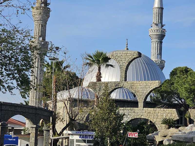 Tolle Moschee im touristischen Zentrum von Belek. Etwas am Rand der Geschäftsstraße direkt hinter dem künstlichen Felsen findet sich die große Moschee von Belek. Eine Besichtigung sollte unbedingt dazu gehören.