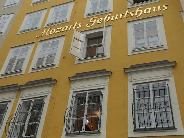 Das Geburtshaus von Wolfgang Amadeus Mozart: Salzburg, Getreidegasse 9. Man kann es aufgrund der Vielzahl der Menschen, die ein Foto dieses Hauses (oder mit sich selbst davor) machen nicht verfehlen. Das Haus selbst ist als Museum angelegt, und man erfährt vieles Wissenswerte über das Leben des Musikers. Diverse Möbelstücke, Partituren und Instrumente sind ebenfalls ausgestellt. Tipp: Mit der Salzburg-Card erhält man Eintritt in fast alle Museen dieser Stadt und spart somit einiges an Geld, als wenn man einzeln den Eintrittspreis für mehrere Museen separat bezahlt.