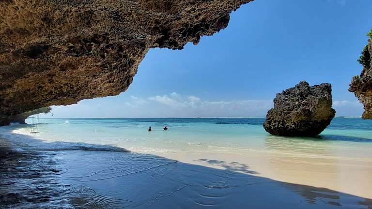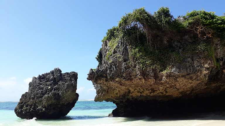Der Mtende Beach ganz im Süden von Sansibar ist ein absoluter Traumstrand für jeden Fotografen. Er ist zwar nicht sehr weitläufig und bietet wenig Platz, aber dafür ist er mehr als malerisch. Je nach Gezeitenstand kann man schwimmen oder nicht. In jedem Fall ist es zu empfehlen allerspätestens um 10 Uhr dort zu sein, eher 9 Uhr, damit man den Strand noch für sich allein hat. Ab 10 Uhr werden die Verkaufsstände aufgebaut und ein Auto nach dem anderen kommt an. Der Weg dorthin mit dem Auto ist recht holperig und man sollte keine größeren Rückenprobleme haben. Rechts und links der Zufahrstraße zum Strand gibt es ebenfalls einiges zu sehen. Ein interessanter Fotostopp ist beim alten Baobab Baum. Außerdem gibt es einige Aussichtspunkte, die man ansteuern kann
