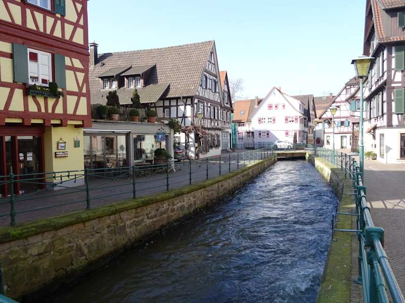 Wunderschöner Bereich in Oberkirch mit tollen Fachwerkhäusern - das älteste in der Gerbergasse aus dem 17. Jahrhundert. Hier befanden sich wohl früher die unterschiedlichsten Mühlen (Getreide-, Öl-, Säge-, Papier- und Schleifmühlen) und auch Hammerschmieden. Zeitgleich wurde der Mühlbach auch für die Müllentsorgung genutzt. Heute ist dieser Abschnitt in Oberkirch malerisch - an den Gebäuden kann man zum Teil Jahreszahlen der Erbauung finden oder das eine oder andere Zunftzeichen.