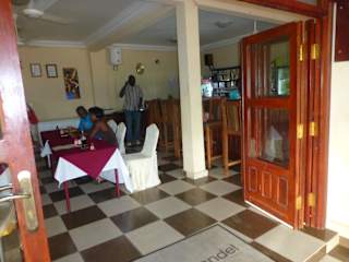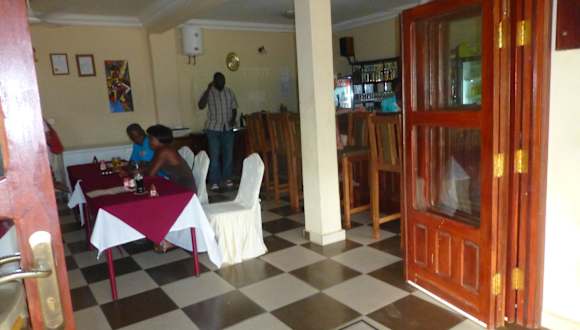 Das Restaurant liegt direkt am Djeliba Hotel & Resort. Ich war im Juni (= ausgesprochene Nebensaison) da. Der Service ist rasend schnell, obwohl bei den WM-Fußballübertragungen einiges los war. Das Bier gibt es in Pintkrügen für 55 Dalasi aus dem Faß eiskalt! Ich habe kein einziges Mal internationale Küche, dafür aber mehrmals typische afrikanische Gerichte gegessen. Ausgezeichnet! Man kann sich die Gerichte auch "nicht scharf" wünschen und bekommt das dann auch so. Mein Favorit war Chicken Domoda, was eine Art Hähnchengulasch mit einer ganz leckeren, dicken Erdnusssauce, Gemüse und Reis ist. (Ich hasse Erdnussbutter aber diese Erdnusssauce ist hervorragend.) Das Gericht kostet 185 Dalasi, ca. 3,70 €, ich wurde satt! Auch gut sind "Yasa" und "Fufu".