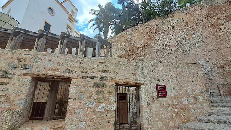 Beim Baluard de Sant Jaume (mittig des Gehweges) liegt ein kleines Museum – das „Museització del Baluard de Sant Jaume“. Es geht eine Treppe hinunter, unten dann ein Gewölbe. Auf den ersten Blick war ich ja ein wenig enttäuscht, aber… ich habe mir dann die diversen Exponate näher angeschaut und fand zusätzlich wirklich interessante Infotafeln / Erklärungen. Zu den Ausstellungsstücken: Kanonen, Mörser, Musketen, Schwerter, Helme, Brustpanzer, Kleidungsstücke, usw. Manche Gerätschaften / Waffen konnte ich nicht identifizieren, werde aber dennoch die Fotos hier einstellen. Vielleicht sind sie ja jemandem bekannt. Zu den Infotafeln im Museum: Die Erklärungen (auch auf Deutsch) zu den „Mörsergranaten“ und insbesondere zu dem „Feuerplan der Befestigungsmauern auf Ibiza“ (+ Karte der Befestigungsanlagen) fand ich sehr interessant. Bilder dieser Infotafeln lege ich hier an. Der Eintritt war zur Zeit meines Aufenthaltes frei.