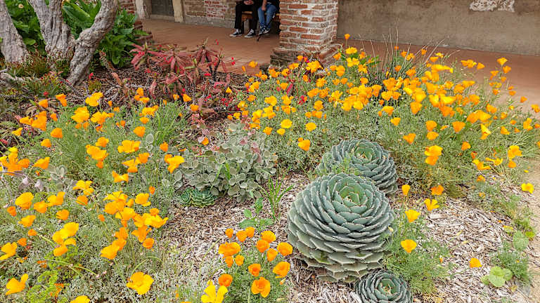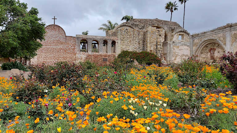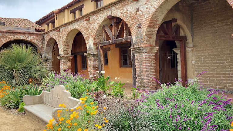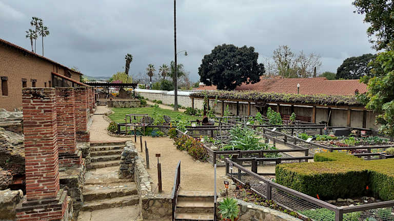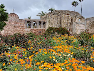 Im 17. Jahrhundert missionierten spanische Franziskanerpater Kalifornien und gründeten 21 Missionen, die 7. ist diese hier. 1776 würde sie eröffnet. Es ist die erste Mission, in der Trauben angebaut wurden und Wein erzeugt wurde. Heute sind hier alte Gebäude, Ruinen, Ausstellungen und wunderschöne Gärten zu bewundern.