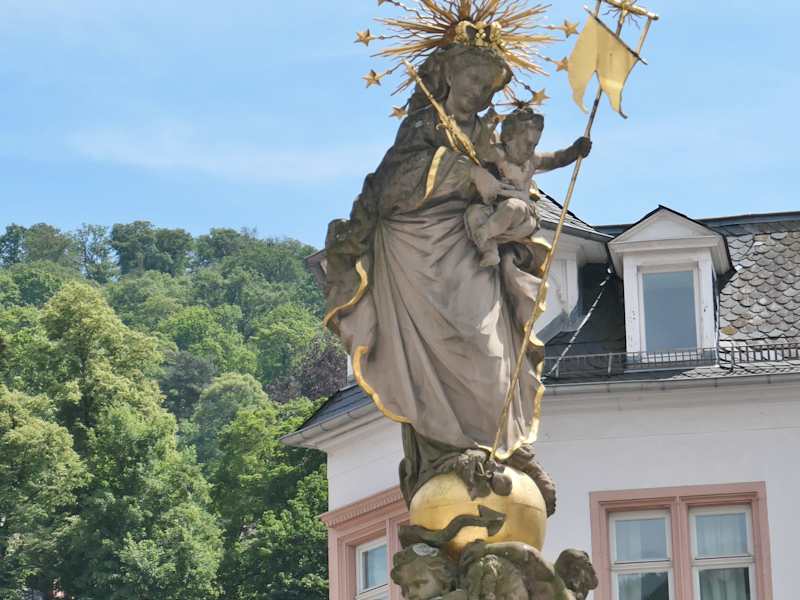 Die Figur wird auch Kornmarkt-Madonna genannt. Die Originalfigur steht heute im Kurpfälzischen Museum. Sehr schönes Fotomotiv - insbesondere in Verbindung mit dem Heidelberger Schloss.