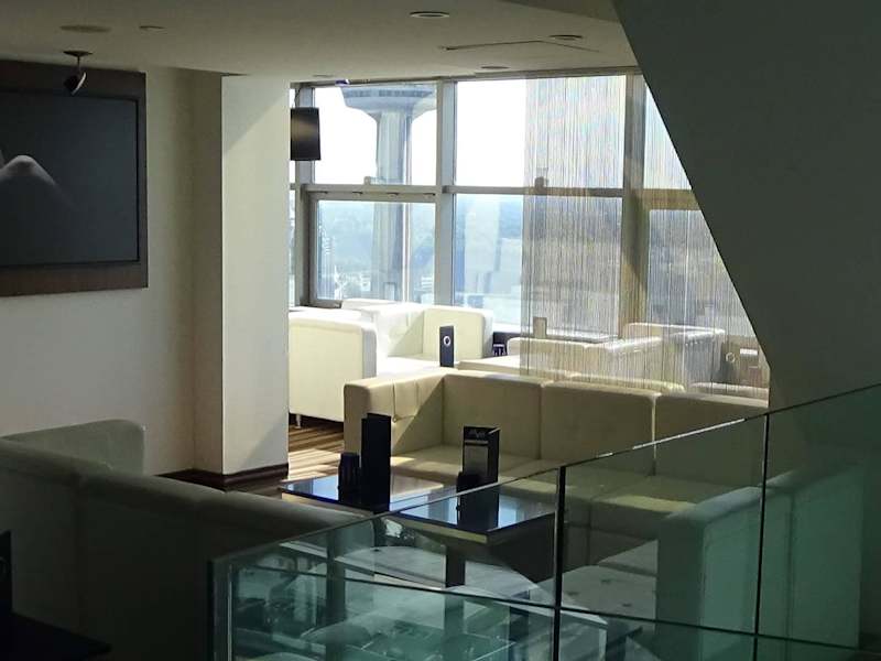 in der 34. Etage oberhalb des Watermark...moderne Ausstattung...Toiletten im Watermark oder in der Lobby...Getränke und kleine Speisen ab 10,00 plus min. 30% Steuern und Tip...Teuer...? absoluter Quatsch...hier zählt die Lage...fantastische Aussichten auf beide Fälle...wir wohnten in der 48. Etage des Hilton und können nur Empfehlen bei den Zimmern nicht zu sparen...eher ruhige Atmosphäre...die sonst in NF weilenden Honks sind lieber in Clifton Hills (würg) unterwegs...adretter, freundlicher, legerer Service...Qualität der Speisen und Getränke leider, International gesehen, eher unterdurchschnittlich...