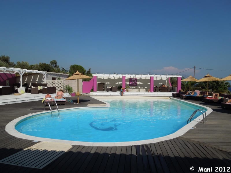 Die Poolbar liegt etwas außerhalb von Votsalakia in Richtung Limnionas direkt an der sehr wenig befahrenen Durchgangsstraße. Gehzeit vom Hotel Votsalakia aus ca. 15 Minuten. Wenige Stufen führen hinauf zu Lucy´s Poolbar, die auch noch das Eisgeschäft in Votsalakia gleich gegenüber vom Taxistandplatz betreibt. Direkt am Pool stehen Schirme und Liegen zur Verfügung. Daneben gibt es auch noch gemütliche Sitzgelegenheiten. Zur Begrüßung gibt es eine Flasche Wasser und zum Kaffee gibt es auch immer wieder kleine Kekse oder Croissants. Für hungrige Gäste werden auch Speisen angeboten. Eine nette Abwechslung zum Strand. Zum Strand gelangt man von dort allerdings nicht. Hier gibt es nur eine Steilküste und es führt kein Weg hinab. Herrlicher Blick hinaus aufs Meer in Richtung Lipsi und Patmos.