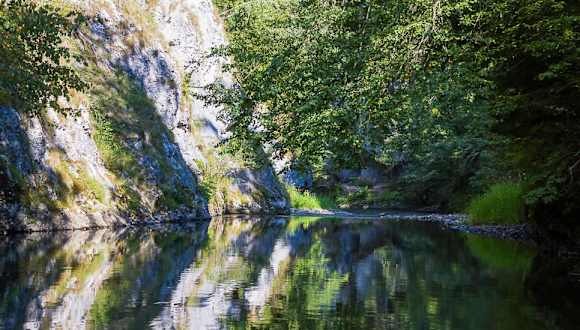 Der Nationalpark Slowakisches Paradies ( slowakisch Narodny Park ) befindet sich im östlichen Teil der Slowakei. Der Park erstreckt sich auf einer Fläche von 19763 ha und die Schutzzone beträgt 13011 ha. Im Jahr 1964 wurde der Narodny Park zum Landschaftsschutzgebiet erklärt und im Jahr 1988 wurde er laut Anordnung der slowakischen Regierung zum Nationalpark umkategorisiert. Der Nationalpark Slowakisches Paradies gehört zu den schönsten Natur- und Wandergebieten in der Slowakei und ist vor allem bekannt wegen seiner Schluchten, die bis zu 300 Meter tief sind. Der Ausgangspunkt unserer 2-stündigen Wanderung war der Parkplatz von Cingov. Cingov befindet sich im Tal des Flusses Hornad am Nordostrand des Nationalparks Slowakisches Paradies. Cingov gilt als idealer Ausgangspunkt für Wanderungen im Nationalpark. Am Eingang des Parks standen mehrere Wegsschilder für die Wanderer. In diesem Waldgebiet befanden sich auch noch mehrere Ferienhäuser. Ein Gedenkstein vom Jahr 1988 erinnert an die Eröffnung des Nationalparks. Wir gingen über eine kleine Brücke und dann entlang eines wildromantischen Gebirgsflusses. Unser Reiseführer erzählte uns unterwegs, dass etwa 90 % der Fläche des Nationalparks vom Wald bedeckt sind. Größtenteils besteht der Wald aus Buchen, Tannen, Fichten und Kiefern. Im Park sollen sich etwa 930 Pflanzenarten befinden, davon sind etwa 30 Arten geschützt. Bei der Wanderung durch das enge schluchtenähnliche Tal, kamen wir auch bei einem Wasserfall vorbei. Wir gingen bis zum Zusammenlauf zweier Gebirgsflüsse unterhalb vom Aussichtspunkt Thomashöhe. Dort legten wir eine kurze Verschnaufpause ein und dann ging es wieder auf dem gleichen Weg zurück zu unserem Ausgangspunkt. Die Bäche und Wasserläufe, die sich tief in den Karst gegraben haben, bilden die Hauptattraktion des Nationalparks. Eine leichte aber sehr interessante Wanderung in einer herrlichen Landschaft.