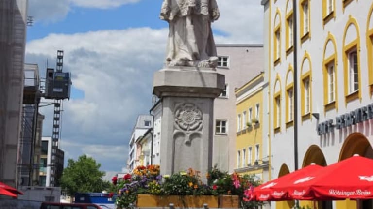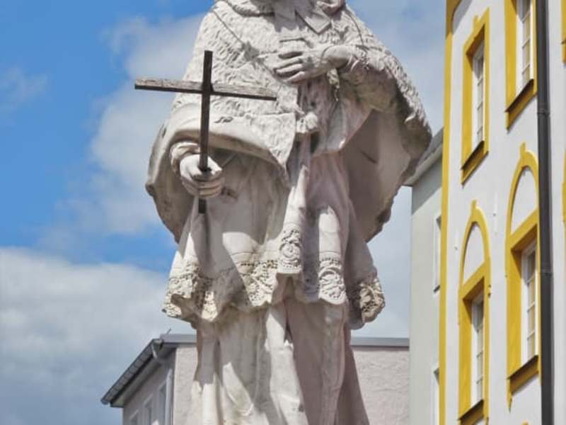 Im Herzen der Rosenheimer Altstadt steht auf dem Max-Josefs-Platz bereits seit 1773 der Nepomukbrunnen, den damals der Bildhauer Franz de Paula Hitzl als Patron der Schiffer und Flößer schuf. Lebensgroß meißelte er den Heiligen aus einem großen Salzburger Marmorblock und seither bewacht Johannes von Nepomuk die Bürger der Stadt. 1953 riss ein beladener LKW die Figur mit seiner Ladung vom Sockel, die Beschädigungen wurden restauriert und der Brückenheilige stand bereits ein Jahr später wieder an seinem Platz. Heute gilt der Nepomukbrunnen als heimlicher Mittelpunkt Rosenheims – man trifft sich gerne beim „Neppo“, der Sockel ist in der warmen Jahreszeit von Blumen geschmückt und als ältester Brunnen der Altstadt hat er sich aus meiner Sicht einen Besuch verdient.