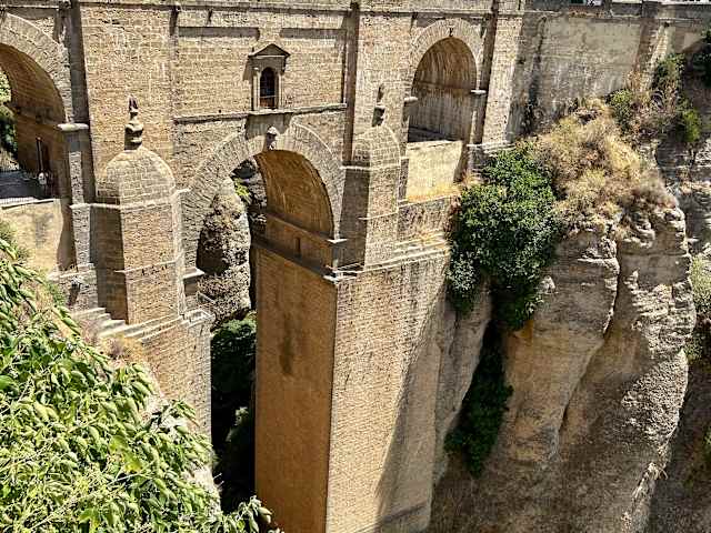 Zu den ältesten Städten Spaniens gehört Ronda mit ihren bedeutenden Denkmälern der Stierkampfarena, und besonders der größten touristischen Attraktion der im 18.Jahrhundert erbauten Puente Nuevo der Neuen Brücke und ihren 4 Torbogen,die die beiden Stadtteile. .La Ciudad..die Altstadt und den neueren Stadtteil..El Mercadillo.. trennt. Diese gilt heute als Wahrzeichen der Stadt Ronda von dieser man einen einmaligen Blick in die 100m tiefe Schlucht hat..ein wirklich imposanter Blick in die Schlucht.