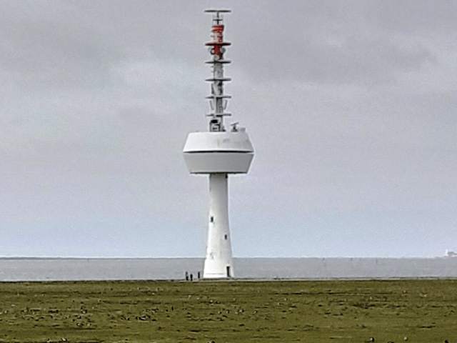 Am nordwestlichen Ufer der Insel Neuwerk befindet sich der weithin sichtbare, ca. 52 Meter hohe Neue Radarturm aus dem Jahr 1986. Dieser Radarturm gehört zu einem Radarverbund, der den Schiffsverkehr überwacht, damit die Schiffe eine sichere Fahrt nach und von Hamburg haben. Bei guter Sicht kann man den Neuen Radarturm schon von der Festlandküste bei Döse, Duhnen und Sahlenburg aus sehen. Auf der Insel Neuwerk hatten wir sowohl von der Aussichtsplattform vom Leuchtturm, als auch vom Ringdeich aus, einen guten Blick zum Neuen Radarturm. Der Neue Radarturm ist inzwischen ein Wahrzeichen der Insel Neuwerk. ANMERKUNG: Obwohl die Insel Neuwerk nur ca. 14 km nördlich von der Küste von Cuxhaven liegt, gehört sie nicht zu Cuxhaven, sondern zum ca. 120 km entfernten Hamburg.
