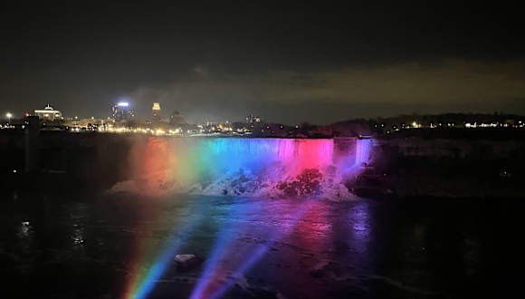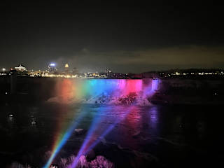 von der Kanadischen Seite aus gesehen ein beeindruckendes Naturschauspiel. Nachts sind die Fälle beleuchtet.
