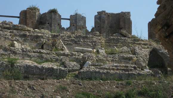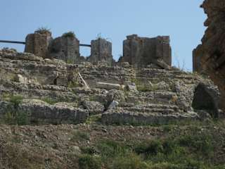 Dass hier in römischer Zeit einmal über 300. 000 Menschen gelebt haben sollen, lässt heute noch das riesige Territorium der archäologischen Stätte erahnen, das sich weit verstreut auf der schmalen Landzunge zwischen Ambrakischem Golf und Ionischem Meer, ca. 12 km nördlich von Preveza befindet. Schon bei der Anfahrt sieht man immer wieder Bruchstücke und Mauerreste aus den umliegenden Gemüsefeldern aufragen. Nachdem 31 v. Chr. in dieser Gegend eine der größten Seeschlachten der griechischen Antike zwischen Octavius Augustus und seinen Widersachern Marcus Antonius und Kleopatra VII. stattfand, gründete der Sieger und damit zum ersten Kaiser von Rom avancierte Octavius Augustus an dieser Stelle seine Siegesstadt- Nikopolis. Sie wurde zu einem wichtigen Handelszentrum und besaß zudem einen hohen Stellenwert für die angestrebte „Romanisierung“ Griechenlands. Zum Gedenken an seinen Sieg ließ er die zur damaligen Zeit bedeutenden Aktia- Festspiele wieder aufleben, ein sportlich- musikalischer Wettstreit, der alle vier Jahre in Nikopolis ausgetragen wurde. Im Zuge der Christianisierung erlebte die Stadt eine weitere wirtschaftliche und religiöse Blütezeit. Bis zu ihrem endgültigen Untergang im 13. Jahrhundert wurde die Polis aber auch immer wieder von Erdbeben, Angriffen und Plünderungen gebeutelt und von politischen und wirtschaftlichen Unruhen geschwächt. Der Hauptbezirk der heutigen Ausgrabungen ist umgeben von einer gewaltigen römischen Stadtmauer, in dem heute noch die Reste des Odeions, der Badeanlage, dem Nymphaion und der Basilika St. Doumetios mit ihren einzigartigen Fußbodenmosaiken zu sehen sind. Hier liegt auch das kleine, ziemlich in die Jahre gekommene Museum, welches mal wieder eine gründliche Renovierung vertragen könnte und deshalb leider nicht so recht den würdigen Rahmen für die Ausgrabungsfunde bietet. Außerhalb der Stadtmauern, in nördlicher Richtung liegen das Theater, das Stadion und das Apollon- Heiligtum (Monument des Augustus). Die Stätten sind ca. 1 km vom o. g. Hauptareal entfernt und können mit dem Auto angefahren werden. Besondere Pflege hat man den an sich sehenswerten Funden nicht angedeihen lassen- das Theater ist arg baufällig und war zu unserer Zeit komplett gesperrt und auch das Stadion lässt sich unter dem Wildwuchs heimischer Vegetation nur noch erahnen. Lohnenswert dagegen ist, schon alleine wegen des tollen Panoramablicks, der Besuch des Augustus-Monuments, welches sich auf einer Anhöhe oberhalb des heutigen Dorfes Nikopoli befindet. Das Gelände liegt größtenteils vollkommen schattenlos, so dass man seinen Besuch möglichst frühzeitig beginnen sollte. Außerdem schließt es bereits am frühen Nachmittag schon wieder seine Pforten- zuverlässige Öffnungszeiten konnten wir leider nicht in Erfahrung bringen. Ausreichend Wasser sollte man mitnehmen, es gibt keine Möglichkeiten zum Kauf von Getränken. Da hier ganz offenkundig die finanziellen Mittel zur Erhaltung der Stätte fehlen, hat uns der lasche Umgang bei der Erhebung der Eintrittsgelder schon geärgert. Wer nicht freiwillig zum Museum geht ( und das tun wohl die wenigsten) kommt um den eh schon lächerlichen Betrag von € 3, 00 herum und kann das komplette Areal kostenlos besichtigen. Schade, dass man auf diese Einnahmen verzichtet, denn hier wäre das Geld sicher gut angelegt.