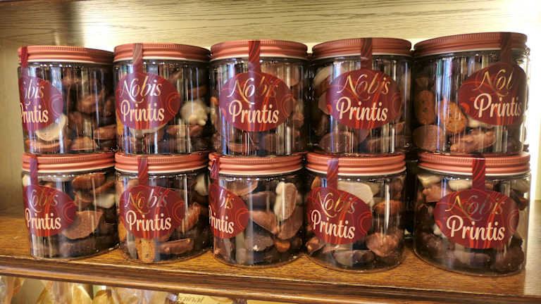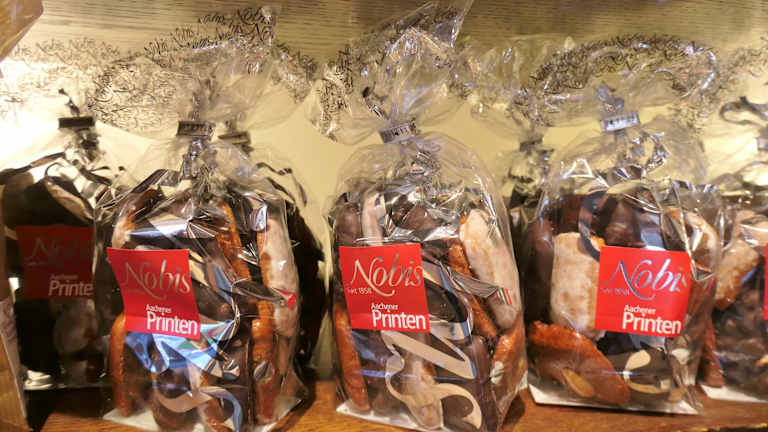 Die Bäckerei Nobis ist berühmt für ihre Printen und unterhält in Aachen über 40 Filialen, in denen man nicht nur Brot, Brötchen und Feingebäck, sondern eben auch diese ganz besondere Lebkuchen-Spezialität der Stadt in vielen Varianten kaufen kann. Mein Favorit ist dabei die Filiale am Münsterplatz, in der es das Vollsortiment in allen Größen und in hübschen Verpackungen zu kaufen gibt: Kräuter-, Prinzess- und Schokoprinten, Weichprinten und Hausspezialitäten wie die „Domspitzen“, unter deren Schokoguss sich Printe und süßes Marzipan verbergen. Eine Besonderheit ist die gläserne Manufaktur, die sich etwas versteckt hinter dem Tresenbereich der Bäckerei befindet – hier wird der Printenteig vor den Augen des Publikums ausgerollt, in Form gebracht und auf den Backblechen verteilt – besonderes für Kinder ein großer Spaß!