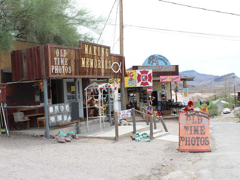 Die ehemalige Goldgräbersiedlung "Oatman" liegt an der Route 66 in den Black Mountains von Mohave County. Sie wurde im Jahr 1906 als Zeltlagerstadt gegründet und nach Olive Oatman, einer jungen Frau aus Illinois, die von Apache-Indianern entführt und in die Sklaverei gezwungen worden war, benannt. Ab Mitte der 1930er Jahre ging die Produktion von Gold zurück und 1942 wurden die letzten verbliebenen Minen geschlossen. Die Bewohner hielten das Dorf jedoch so authentisch wie möglich, um den Besuchern einen Blick zurück in die Geschichte zu gewähren und den Wilden Westen so zu zeigen, wie er war. Die Stadt bietet Souvenirläden, Restaurants und inszenierte Schießereien. Das 1902 erbaute Oatman Hotel ist das älteste zweistöckige Adobe-Gebäude im Mojave County. Ein besonderes Merkmal sind die wilden Esel, Burros, deren Vorfahren einst zum Transport von Gestein und Erz verwendet worden waren. Sie sind jetzt durch Gesetze vor Gefangennahme, Verletzung oder Belästigung geschützt. Homepage: https://www.oatmangoldroad.org/