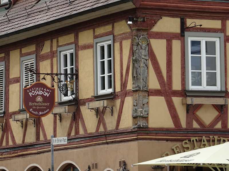 Das Obere Badehaus am Hans-Heinrich-Ehrler-Platz verfügte wohl schon Mitte des 16. Jahrhunderts über eine Badeordnung. Der Bader war damals nicht nur für das Beheizen des Bades verantwortlich sondern war auch Barbier und Friseur. Heute befindet sich in dem Fachwerkhaus unter anderem ein Restaurant. Sehr schön sind die Schnitzereien an der Ecke zum Platz.