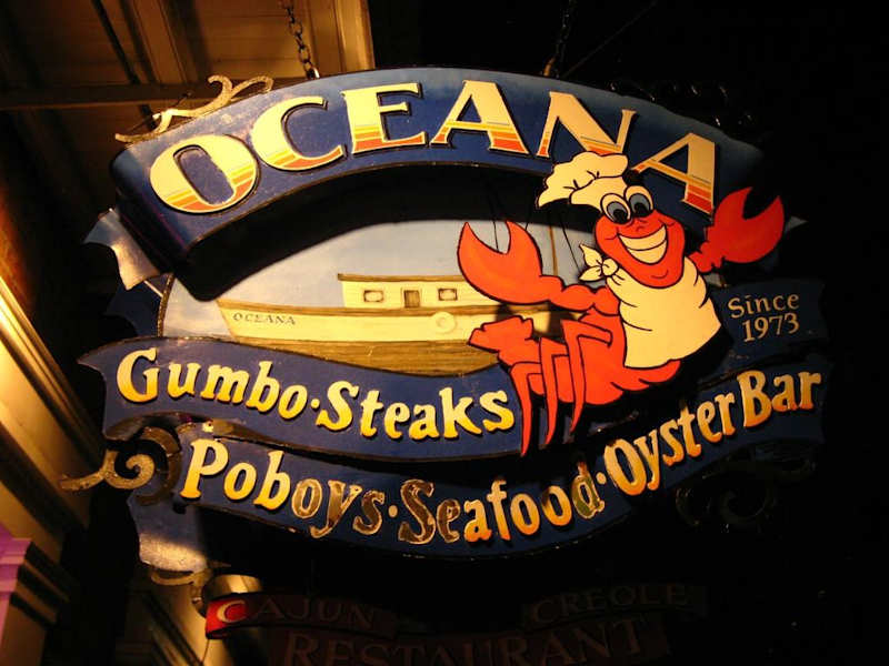 In der Conti- Street in New Orleans gelegen (3. Querstraße, wenn man die Bourbon- Street im French Quarter von der Canal- Street her rein geht) sind wir eher zufällig auf das "Oceana" gestoßen. Die Speisekarte hat aber überzeugt. Wie in fast jedem lokal mussten wir uns erst mal an der "Rezeption" melden und wurden nach ca. 15 Minuten geholt und an unseren Tisch gebracht. Das das wetter schön war hatten wir das Glück im Innenhof unter freiem Himmel zu sitzen. Rechts und links ums uns die schön gestalteten Balkone des Hauskomplexes. Sofort stellte sich unser Ober persönlich vor und brachte jedem vor der eigentlichen Bestellaufnahme ein großes Glas mit Eiswasser. Wir haben dann gewählt. Als Vorspeise gut gewürzten Alligator- Tail & als Hauptspeise meine Frau eine leckere Pasta mit Shrimps & ich typische Cajun- Küche mit Jambalaya (ähnlich Paella) & Crawfish (Languste). War alles sehr lecker ! zum Nachtisch auch noch eine süße Leckerei und wir waren zufrieden & satt. Bei unserem zweiten Besuch zu Mittag hatten wir dann jeweils einen Catfish- & Shrimps- Platter - lecker frittierten Fisch / Shrimps mit Pommes, Coleslow & zwei verschiedenen Dipps. Das Preisleistungs- Verhältniss geht voll in Ordnung, wenn nicht ... - wie in fast jedem Lokal, in dem wir waren, wurde für "Gesellsschaften" mit 5 oder mehr Personen ein Aufschlag auf die Rechnung in Höhe von 18 % fällig. für mich völlig unverständlich - was also machen - klar unsere kleine Gruppe mit 8 Mann in 2 Vierergruppen teilen ;-)