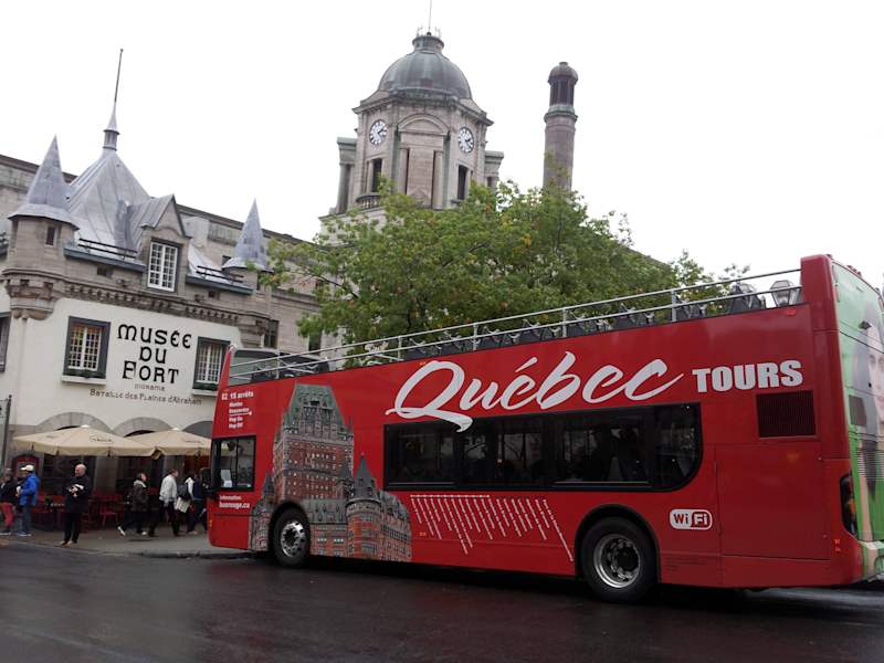 In Quebec gibt es vom Anbieter “Old Quebec Tours” drei unterschiedliche Linien der Hop on hop off – Busse; man kann die Linien jeweils einzeln buchen oder auch ein 2-Tages-Kombiticket erwerben. Red Loop: Stadtrundfahrt mit 12 verschiedenen Stationen mit den typischen Doppeldeckerbussen, oben offenes Verdeck Blue Loop: Shuttle von Quebec City zu den Montmorency Falls Green Loop: Shopping und Aquarium Alle Linien fahren am Place d’armes ab, das ist der Platz zwischen dem Hotel Chateau Frontenac und der Touristeninformation. Tickets gibt es direkt an der Haltestelle oder auch in der Touristeninformation.