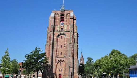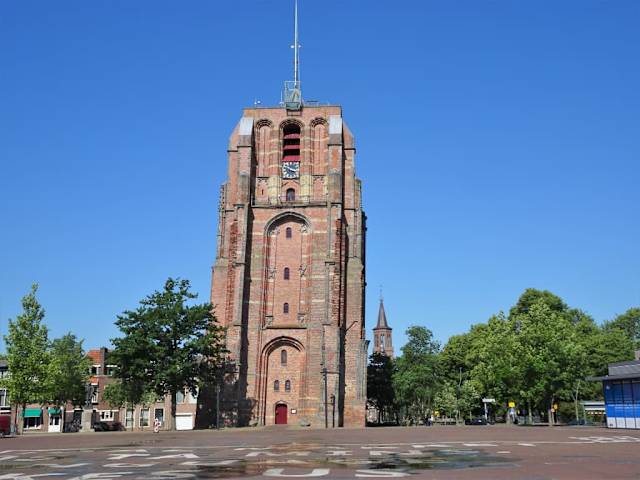 Er ist ein Wahrzeichen der Stadt Leeuwarden – der Kirchturm „Oldehove“. Mit seinem Bau wurde bereits 1529 begonnen und was der deutsche Baumeister Jacob van Aken damals nicht ahnte, war die wechselhafte Bodenbeschaffenheit, denn Leeuwardens Zentrum liegt auf einer von drei Warften mit extrem verdichtetem Grund. Mit dem Fundament des Kirchturms ausgerechnet an der Kante zum lehmigen Untergrund, konnte man schon ab einer Bauhöhe von 10 Metern das drohende Unheil mit bloßem Auge erkennen. Die zunehmende Neigung des Turmes versuchte man durch Stützbalken aufzuhalten, was aber erfolglos blieb und den Turm nicht nur schief, sondern zusätzlich auch krumm werden ließ. Jacob van Aken verstarb drei Jahre nach Baubeginn und sein Nachfolger brach das Bauvorhaben kurze Zeit später endgültig ab. Seit dieser Zeit ragt der unvollendete Kirchturm, der eigentlich 120 Meter hoch werden sollte, als trutziges Bauwerk nur 40 Meter in den Himmel. Der Überhang des Turmes hat inzwischen 1,99 Meter erreicht und seine zugehörige Kirche wurde nach dem Baustopp durch einen Sturm zerstört. Der Oldehove ist weit entfernt von „vollkommen“, wird aber trotzdem mit viel Herzblut verehrt, auf seinem Vorplatz finden Veranstaltungen statt und er gilt als das heimliche Zentrum der Europäischen Kulturhauptstadt des Jahres 2018. Von Anfang April bis Ende Oktober kann man den Oldehove über 183 Treppenstufen besteigen und hat von der Dachetage einen großartigen Rundumblick über Leeuwarden. Wegen der Corona-Pandemie bleibt der Turm derzeit für Besucher geschlossen – ein Blick auf die Homepage informiert über zukünftige Öffnungszeiten und Preise.