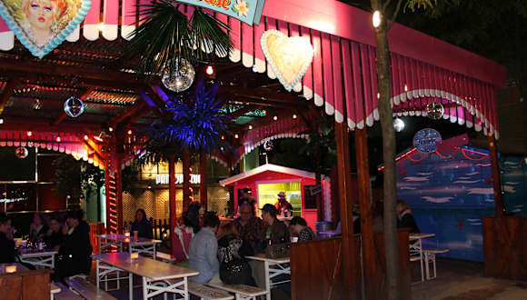 Olivias Kiez Oase ist unser schriller Kiosk-Biergarten auf dem Spielbudenplatz (Hausnummer 0), direkt in Höhe vom TUI Operettenhaus und mit Blick auf die Tanzenden Türme. Der Name der Location ist Programm, denn die Oase ragt mit ihrer erhöhten Lage, den beleuchteten Bäumen, dem Regendach und den kleinen Strandhütten, wie eine kleine gemütliche Insel aus dem bunten Treiben heraus. Man kann bei uns hervorragend sein Bierchen mit Blick auf den Spielbudenplatz und die Reeperbahn genießen und wenn’s kalt wird, machen wir mit Heizstrahlern unseren Sommer- zum kuscheligen Wintergarten. Übrigens: In der Kiez Oase könnt Ihr auch Tickets für Olivias Show Club kaufen und noch spontan die letzten freien Plätze für unsere Kieztouren buchen! Homepage: https://www.olivia-jones.de/bars-clubs/olivias-kiez-oase/